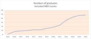 We are so grateful that we have been able to see so many young people qualify as doctors and senior nurses. The graph below shows the number of students to have qualified to date, year by year. This graph does not distinguish between doctors and senior nurses, but for those of you who are interested: of the total of 48 students, 39 qualified as doctors and 9 as senior nurses.